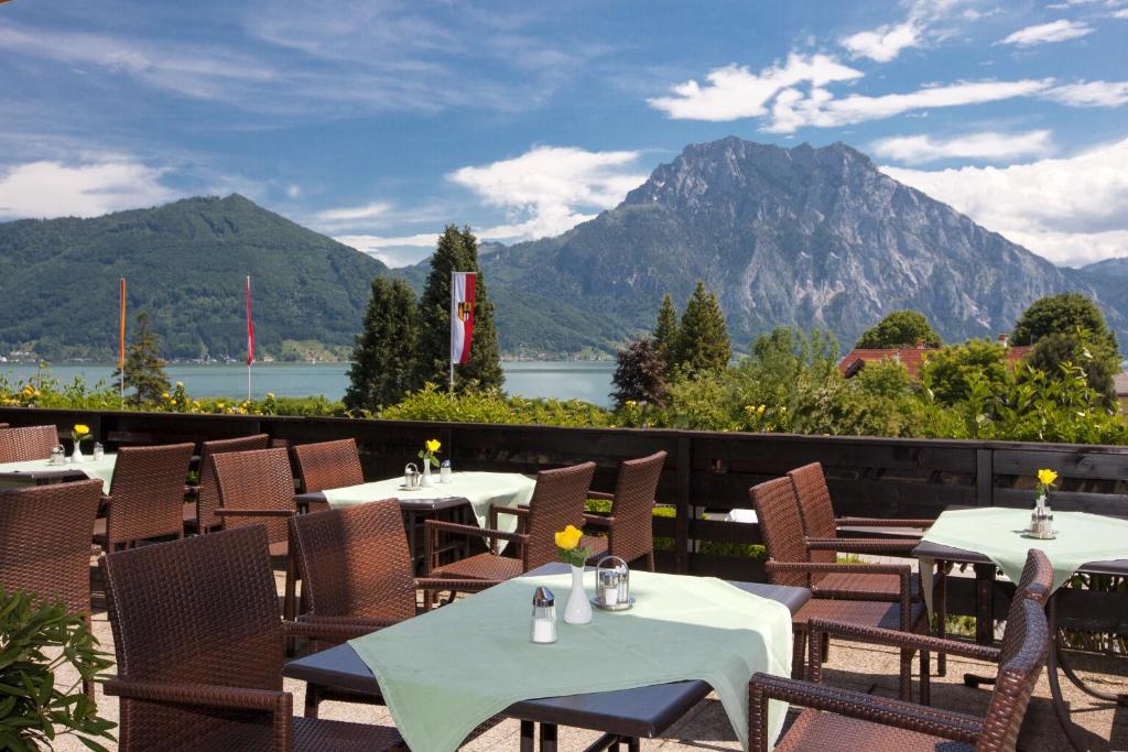 Das Hotel Altmünsterhof bietet ein Frühstücksbuffet. Das Frühstück können Sie entweder auf der Panoramaterrasse mit Blick auf den Traunsee oder im gemütlichen Altmünsterhof-Stüberl genießen.