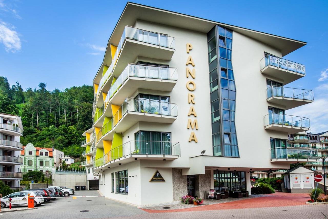 Das Wellnesshotel Panorama bietet moderne Unterkünfte mit Frühstück oder Halbpension im Kurort Trenčianske Teplice. Das Hotel verfügt über ein Fitnesscenter, eine Sauna, eine Bar, eine 24-Stunden-Rezeption, kostenloses WLAN im gesamten Gebäude und Zimmerservice. Es gibt auch einen Innenpool. Im Hotel können Sie Tischtennis und Billard spielen.