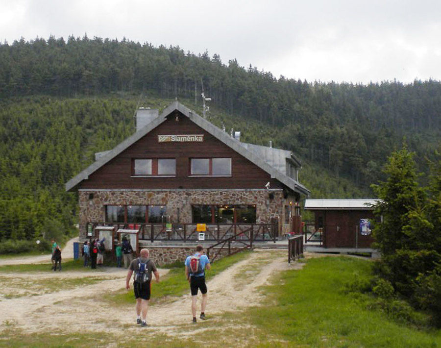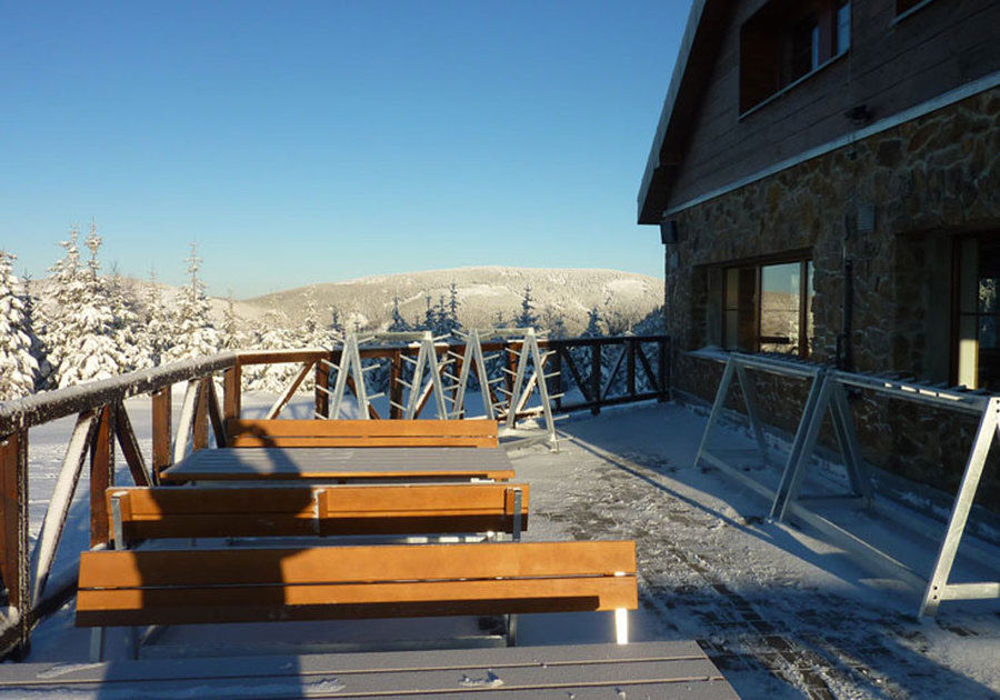 Chata Slaměnka offers its guests a viewing terrace with a sunny terrace and a stylish indoor restaurant with a fireplace and beamed wooden ceiling. Great attention is paid to gastronomy, specifically specialties typical of the local mountain region (including the popular blueberry dumplings). The cottage has a room to store bicycles and is covered by a Wi-Fi signal. In the winter season, parking is provided in the parking lot at the lower station of the cable car, and transport to the top is free (the last cable car leaves at 4:00 p.m. in the winter season), in the summer season it is possible to drive up to the cottage (paved road).