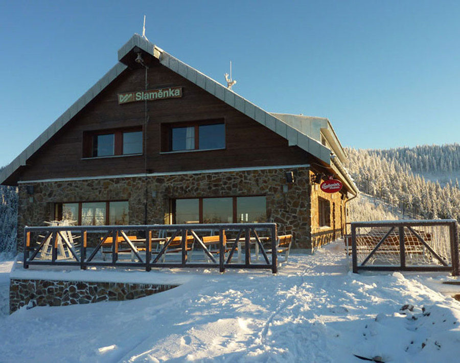 The Slaměnka chalet was built at the upper station of the Sněžník cable car and is therefore the highest chalet in the area at 1,116 m above sea level. At the end of the slopes are the largest rope park in Bohemia (80 obstacles, 5 circuits including a children's circuit), an adventure tower (14 m high with a climbing wall) and a giant tandem swing.