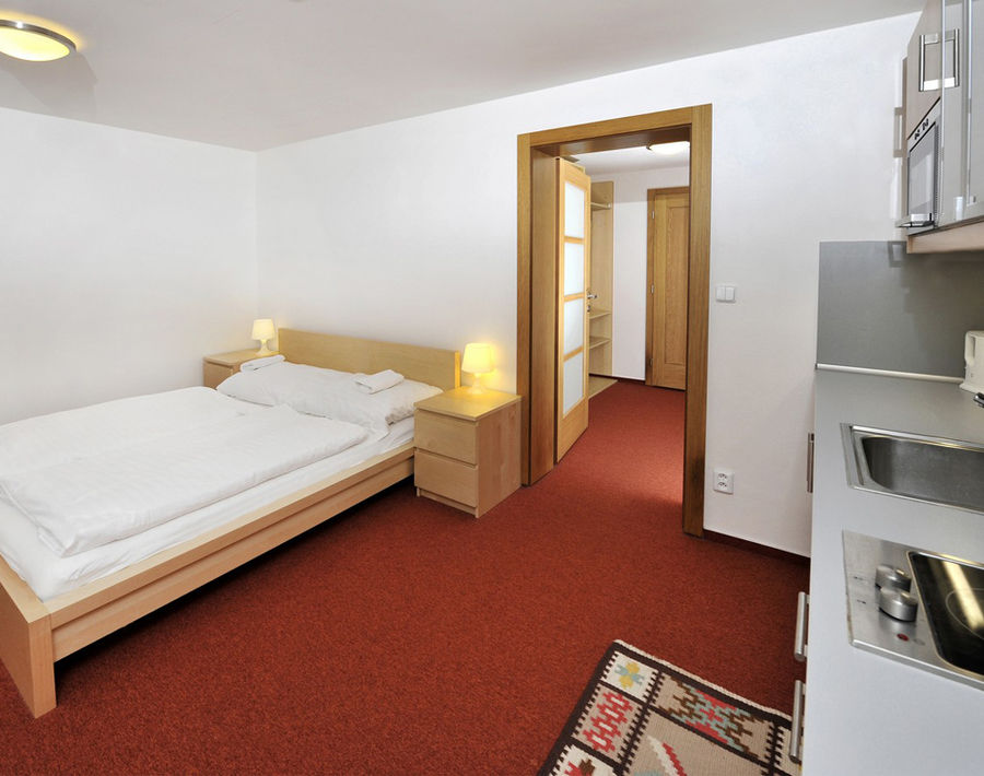 Studio (2 + 1, living area 25 - 30 m2). Accommodation in the studio is suitable for up to 3 people. The studio is located on the ground floor of the apartment house, consists of one room with fully equipped kitchen, kitchen, double bed, extra bed, Wi-Fi, TV-Sat and bathroom with shower.