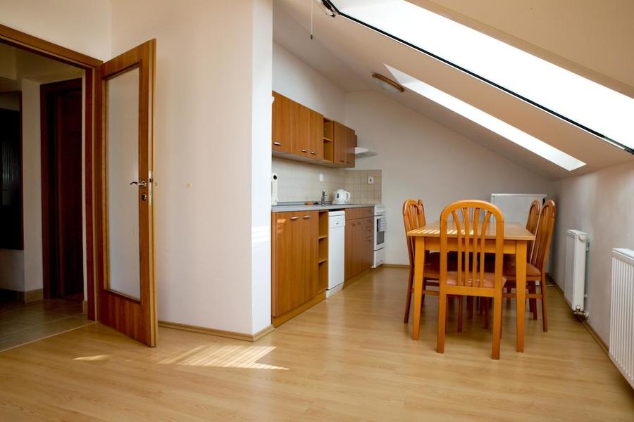The apartments Novy Svet are situated in the ancient town of Trebon that lies between the towns of Ceske Budejovice and Jindrichuv Hradec. Trebon is surrounded by a picturesque landscape with a number of ponds interconnected with numerous channels and brooks. The unique natural spots with the plenitude of plants and animals secured the area of Trebon a listing in the international system of UNESCO Biosphere Reserve in 1977.
