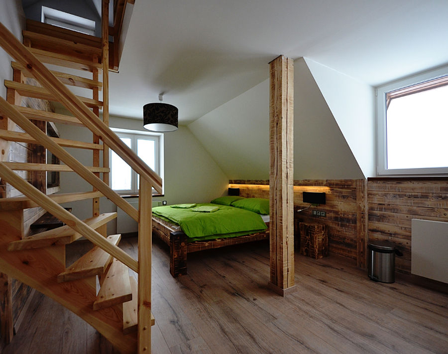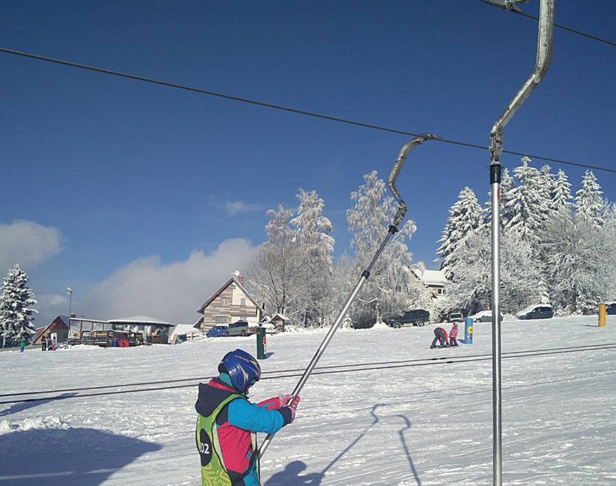 Trzy apartamenty rodzinne składające się z 4+2 | 2+2 i 2+4, balkon z widokiem na stok narciarski przed domem, widok na region i okolicę, grzbiety Karkonoszy i zachody słońca.