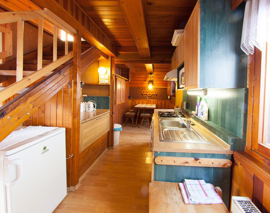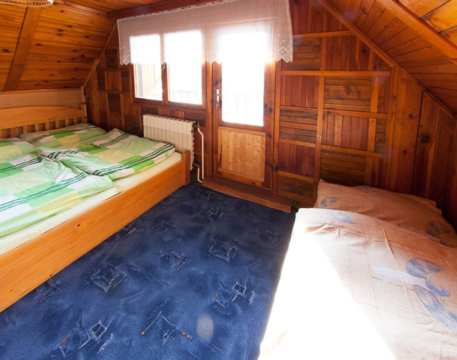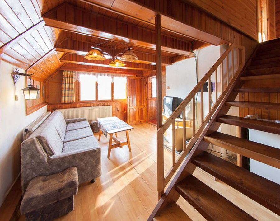 W Chacie znajdują się trzy pokoje dwu-osobowe ( w jednym z pokoi znajduje się łożko dodatkowe dla dziecka) , w Sali gościnnej znajduje się TV SAT, wyposażony aneks kuchenny, pokoj z kominkiem, łazienka z wanną i prysznicem oraz 2 WC.