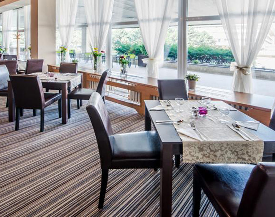 V prostorách hotelu je lobby s recepcí s 24 hodinovým provozem, kavárna, nekuřácká restaurace a v letních měsících terasa s výhledem na městský park. Objednat si můžete jídla české i mezinárodní kuchyně i vybrat z řady domácích limonád, nebo míchaných nápojů.