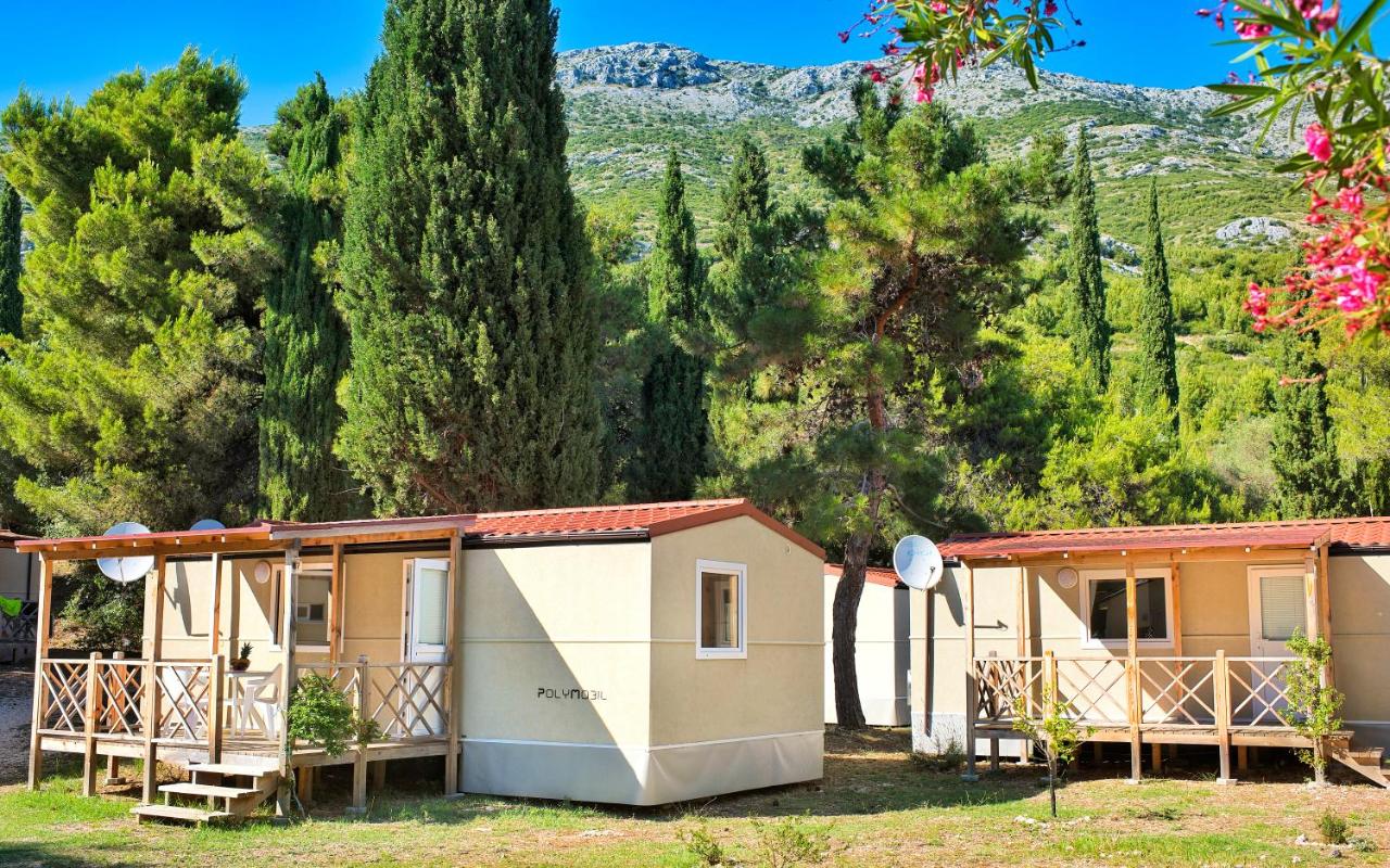 Mobilní domy, přímo na pobřeží, ve stínu středomořských stromů, poblíž krásné kamínkové pláže. Restaurace a supermarket se nachází pouhých 100 m od kempu. Na nedaleké oblázkové pláži najdete centrum windsurfingu.