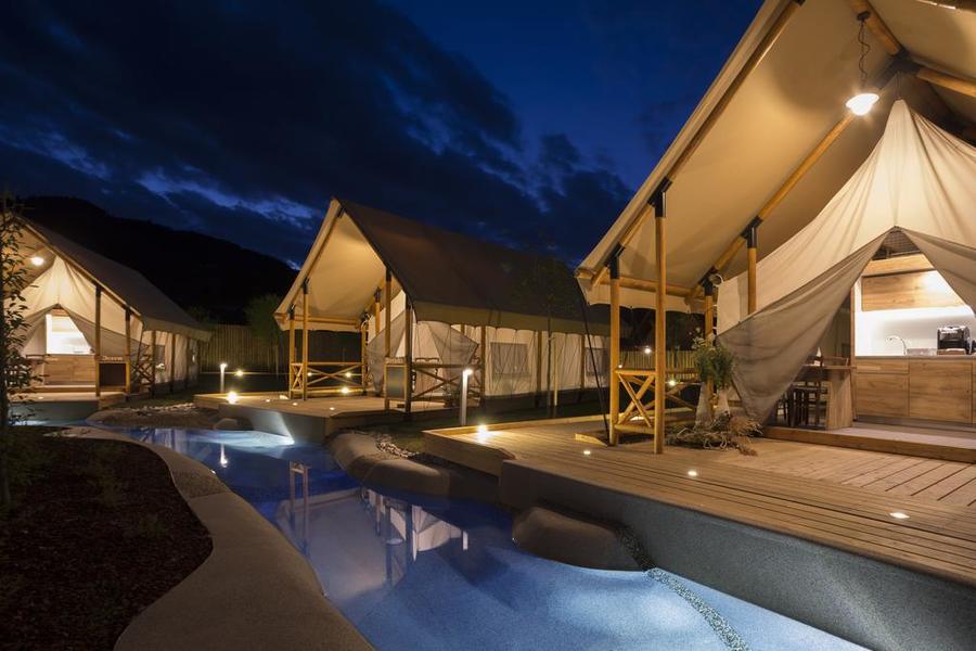 Okouzlující kemp, kde můžete nahradit pohodlí hotelového pokoje pro butikové designové středisko v kontaktu s přírodou a zůstat v luxusních a stylově zařízených stanech s vlastní koupelnou, někteří dokonce s kuchyní a vlastním vířivkou.