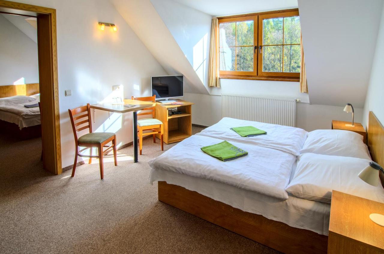 Alpejski Zieleniec je hotel, jak už název sám naznačuje, s alpským nádechem v 1000 m.n.m. přímo na sjezdovce u lázeňského města Dušníky.